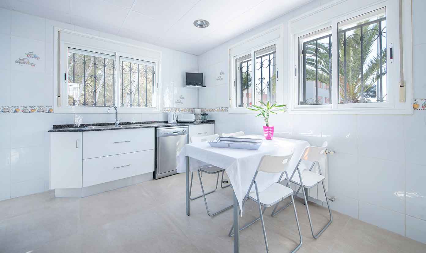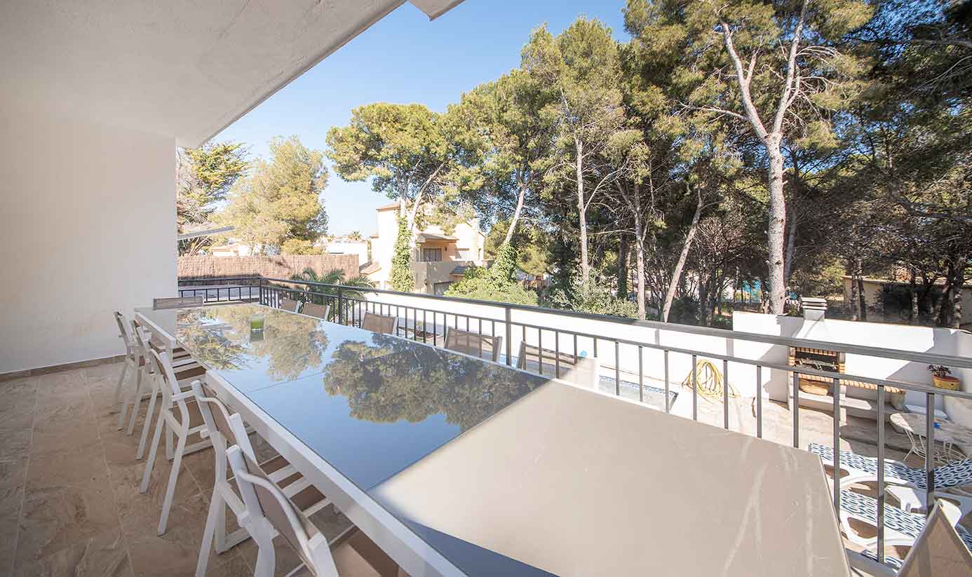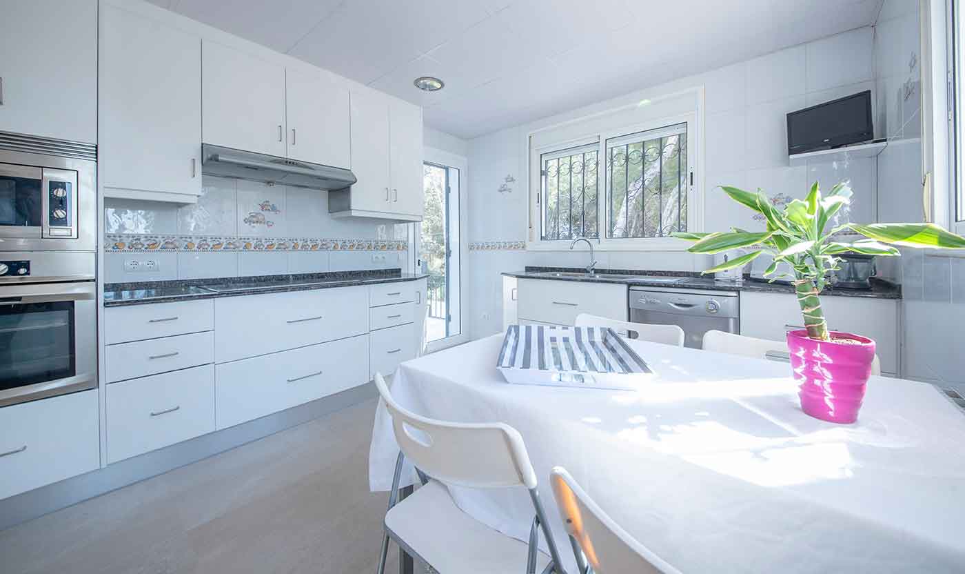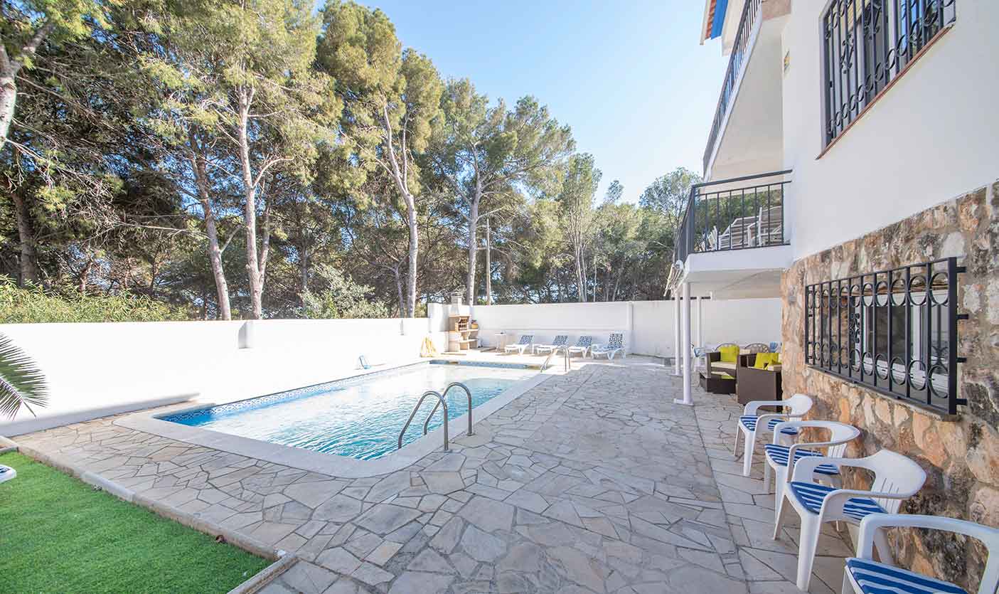 Reformada y elegantemente decorada, esta Villa familiar ofrece 7 habitaciones grandes y 7 baños completos (todos tienen baño en suite), capaces para alojar hasta 24 huéspedes.La cocina totalmente equipada con una agradable área de desayuno y conexión con la terraza del comedor y gran salón multifunción que da a un exuberante jardín privado con chill out, gran piscina (10 x 4 metros), barbacoa y mesa de ping pong.