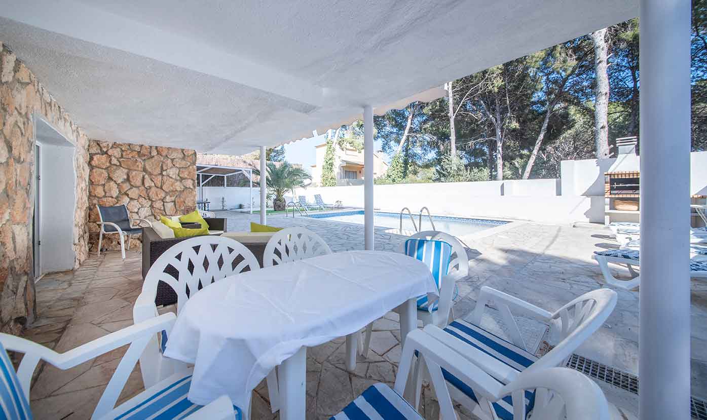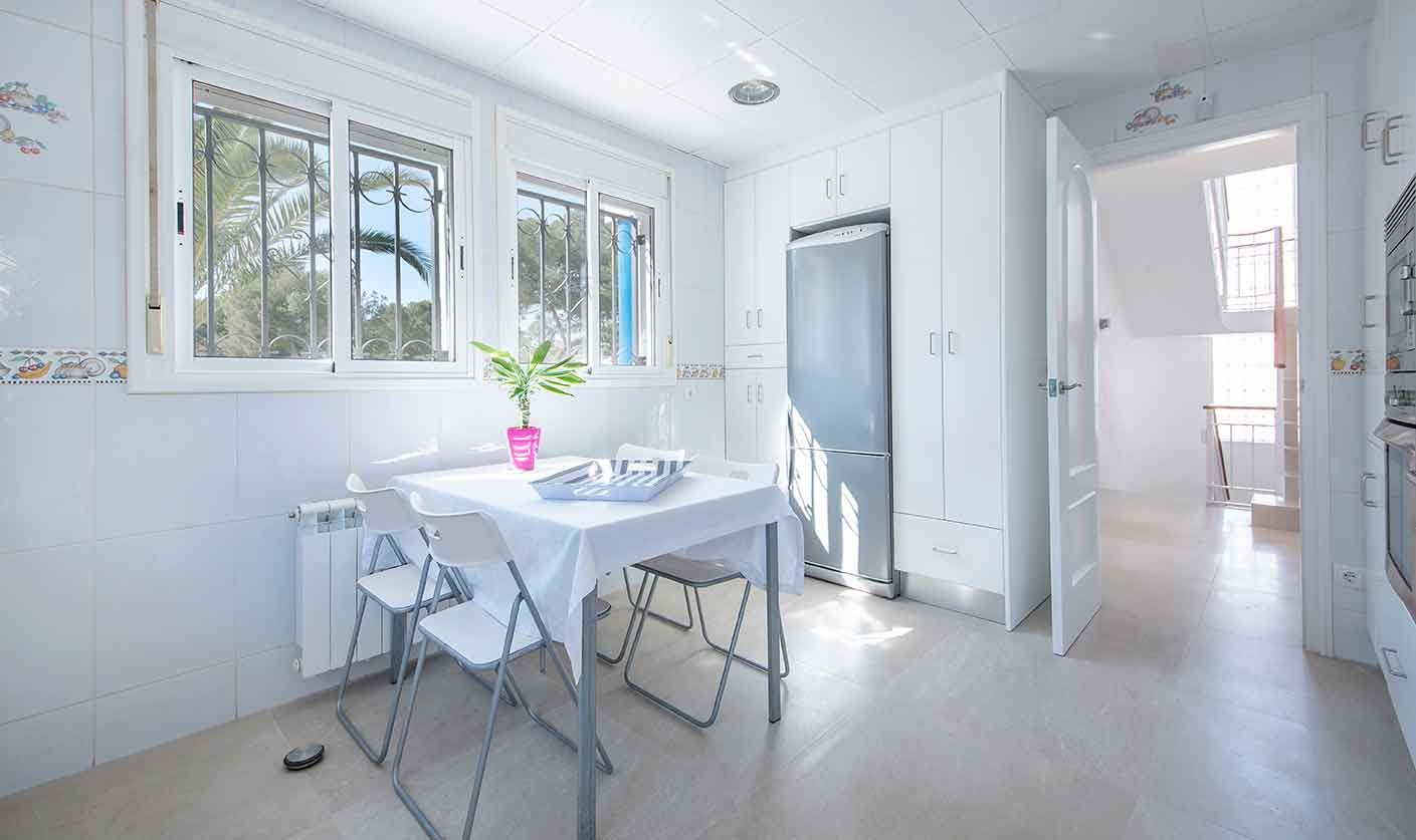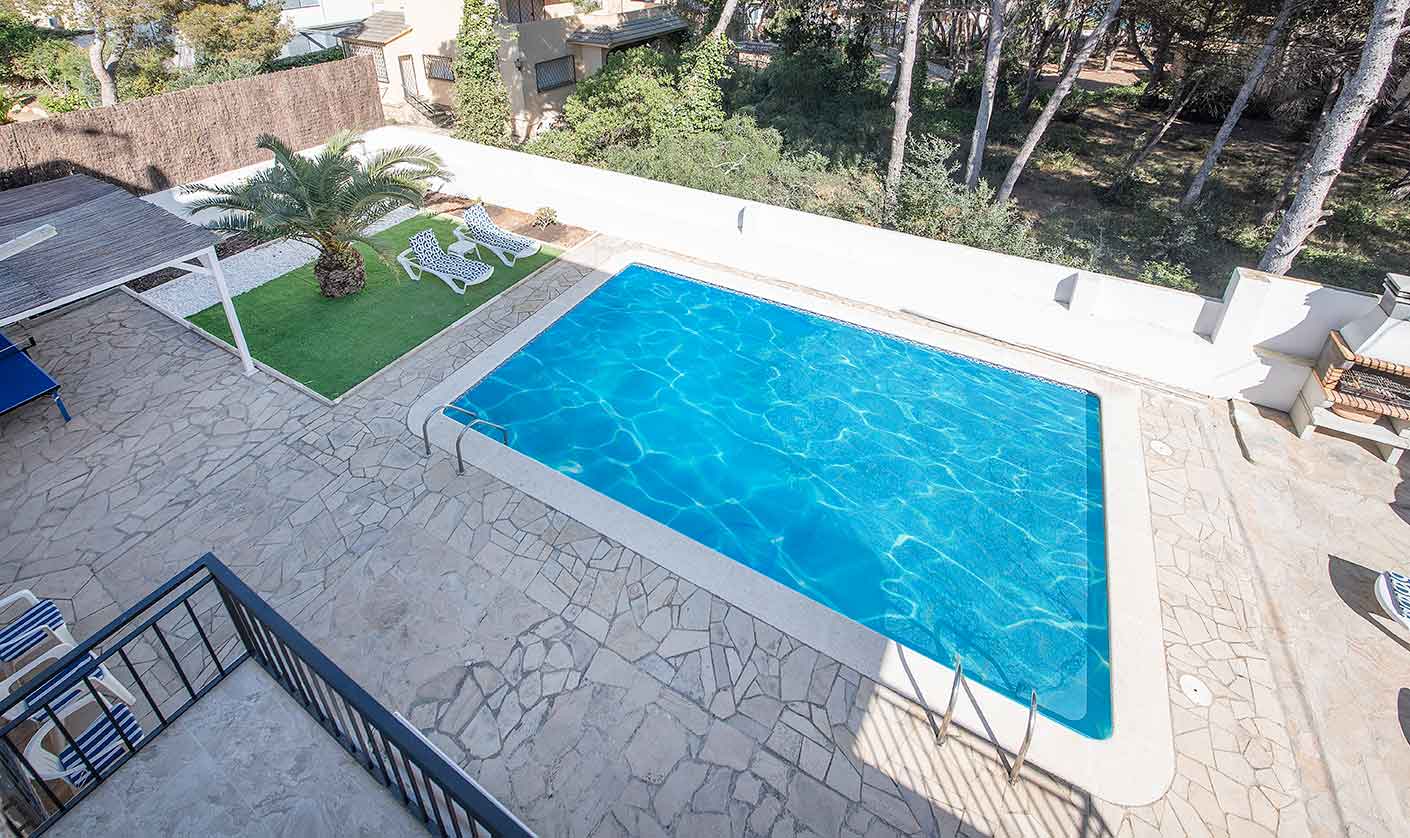 Reformada y elegantemente decorada, esta Villa familiar ofrece 7 habitaciones grandes y 7 baños completos (todos tienen baño en suite), capaces para alojar hasta 24 huéspedes.La cocina totalmente equipada con una agradable área de desayuno y conexión con la terraza del comedor y gran salón multifunción que da a un exuberante jardín privado con chill out, gran piscina (10 x 4 metros), barbacoa y mesa de ping pong.